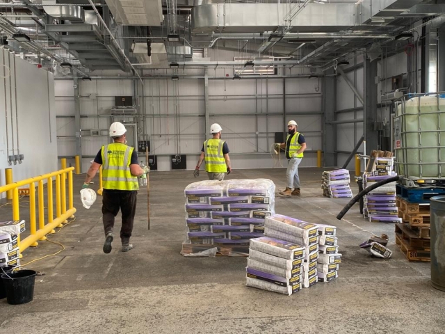 Where we installed a polymer modified bonded screed laid to falls in to drains for a wash down area.